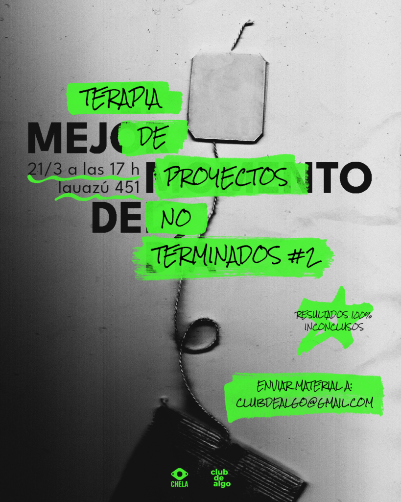 Frente al advenimiento de un exitismo descomunal, y en defensa del noble concepto del fracaso, Club de Algo invita al segundo encuentro de proyectos no terminados.